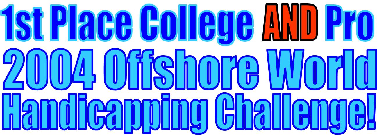 For the 2004 / 2005 Football Season, We won both the College and Pro divisions in the Offshore World Handicapping Challenge by doing something that has never been done by a legitimate Service- We simply blew away the competition hitting 71.3% ATS in College, 69.3% ATS in the Pros for a combined 70.5% overall win rate.
